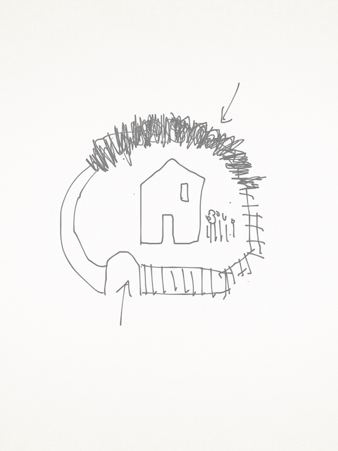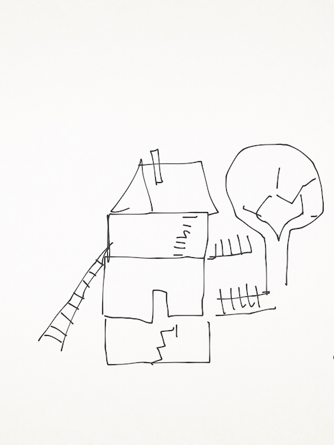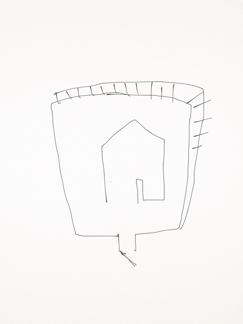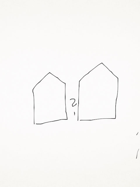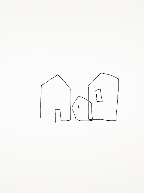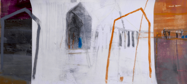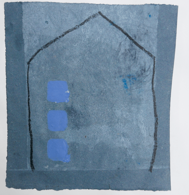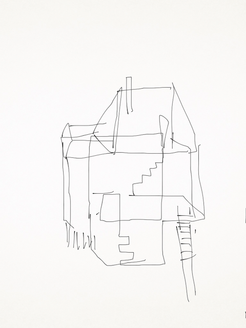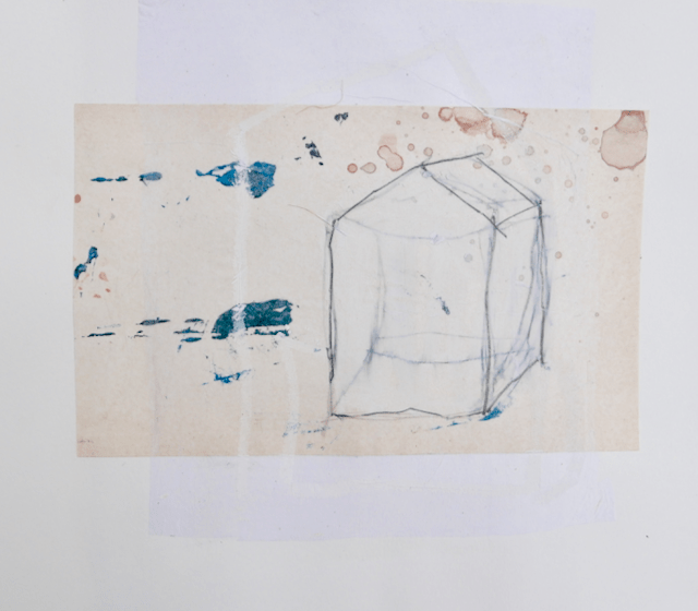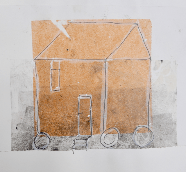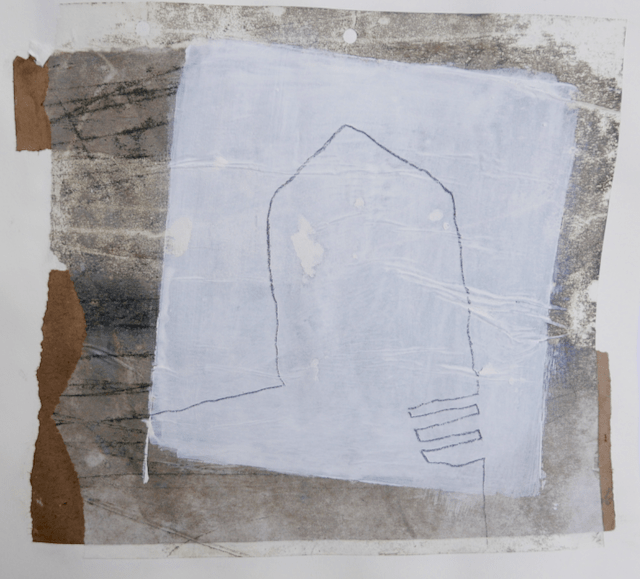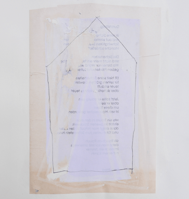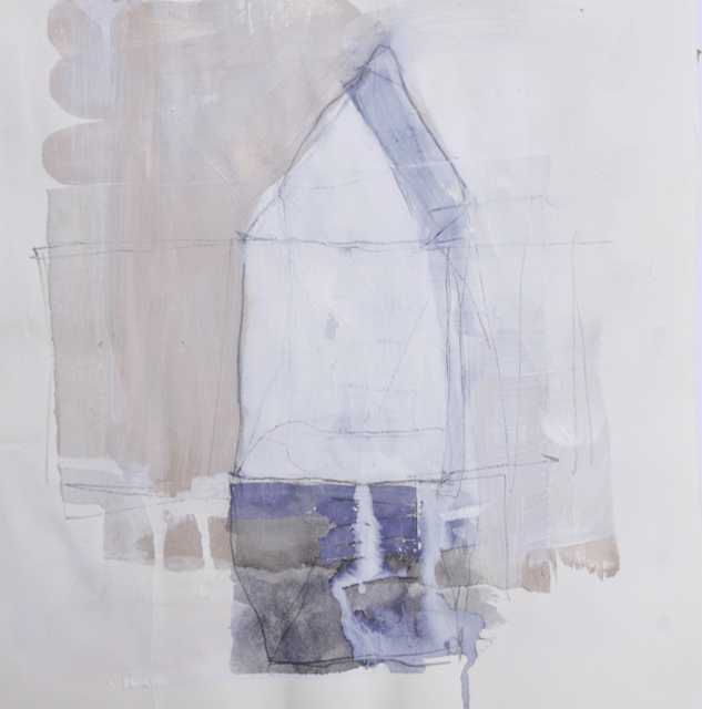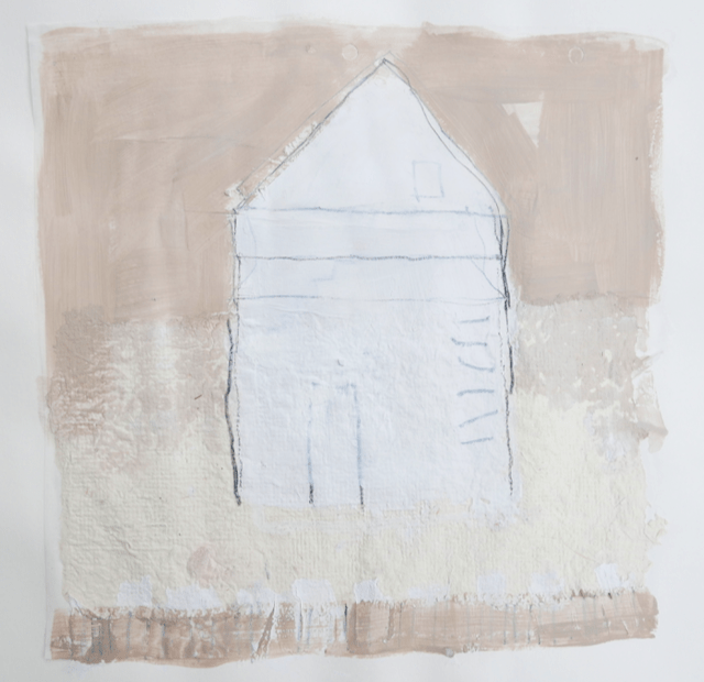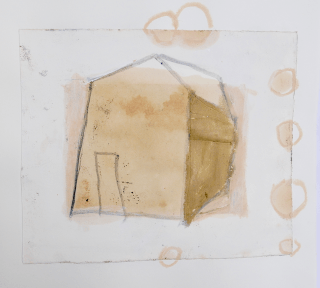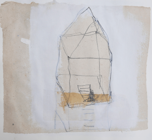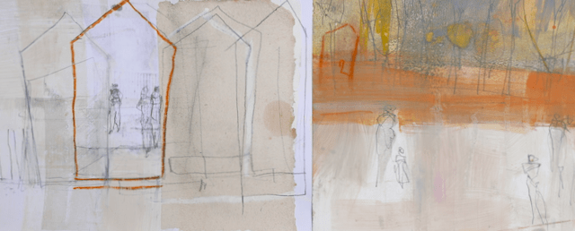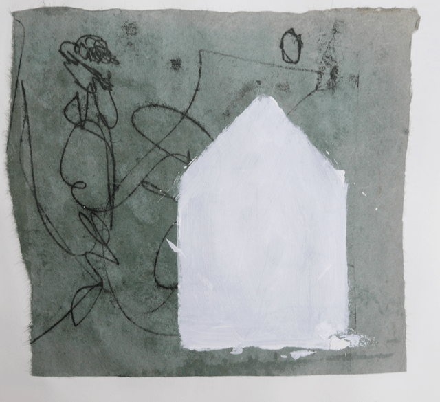 aus dem Skizzenbuch, „Annäherungen“. Malerei, Collage, Druck, Zeichnung, täglich neue und andere Annäherungen an das Thema Haus. Wo liegen die Grenzen des Zuviel oder Zuwenig?