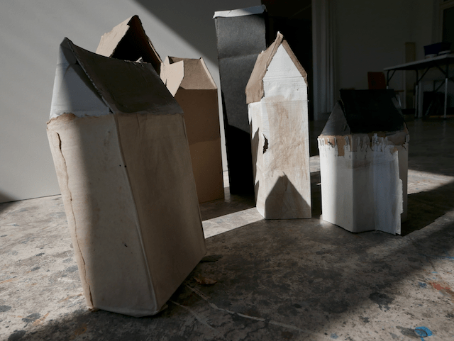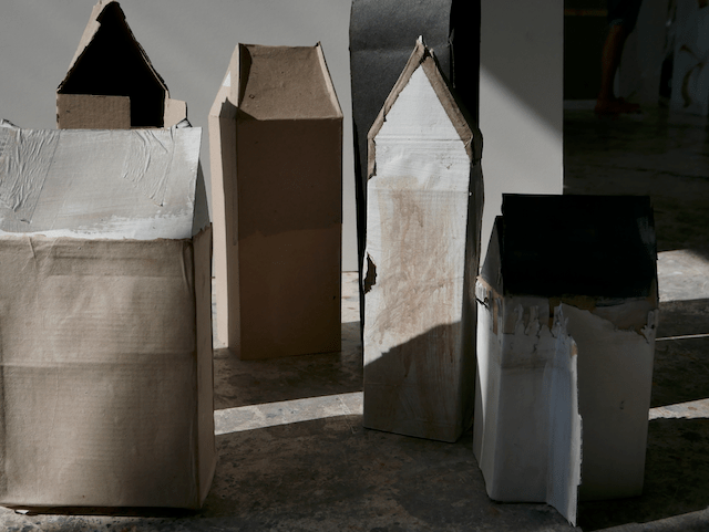 Hausstrukturen, anbauen, ausbauen, ergänzen, phantasieren. Hochhaus, Reihenhaus, Siedlung, Begegnung, Abgrenzung, Überschneidung. Geschichten von erzählen.