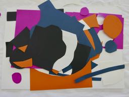 Die Blätter einer Farbgruppe zerschneiden, dabei unterschiedliche Formen (und Leerräume) erschaffen. Eigene Regeln formulieren, z. B. nur gerundete Formen .